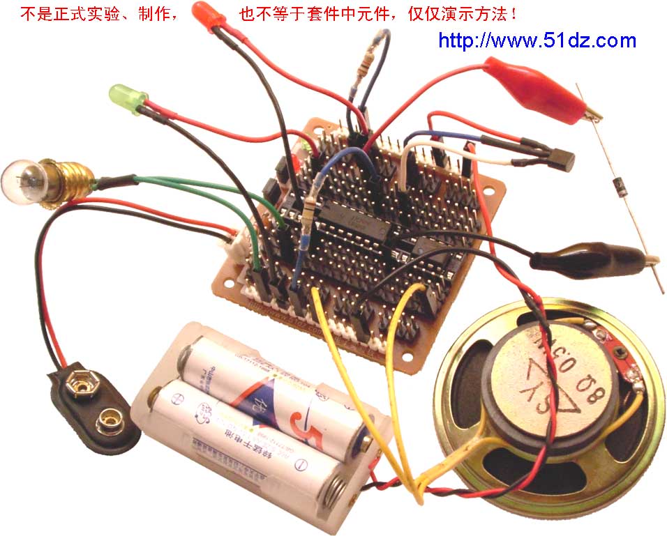 在电子实验板上插拔电子元件就可以做电子实验。第一次看一看套件应用方法图或者说明书就会了,只要有一双手,不可能不会用。