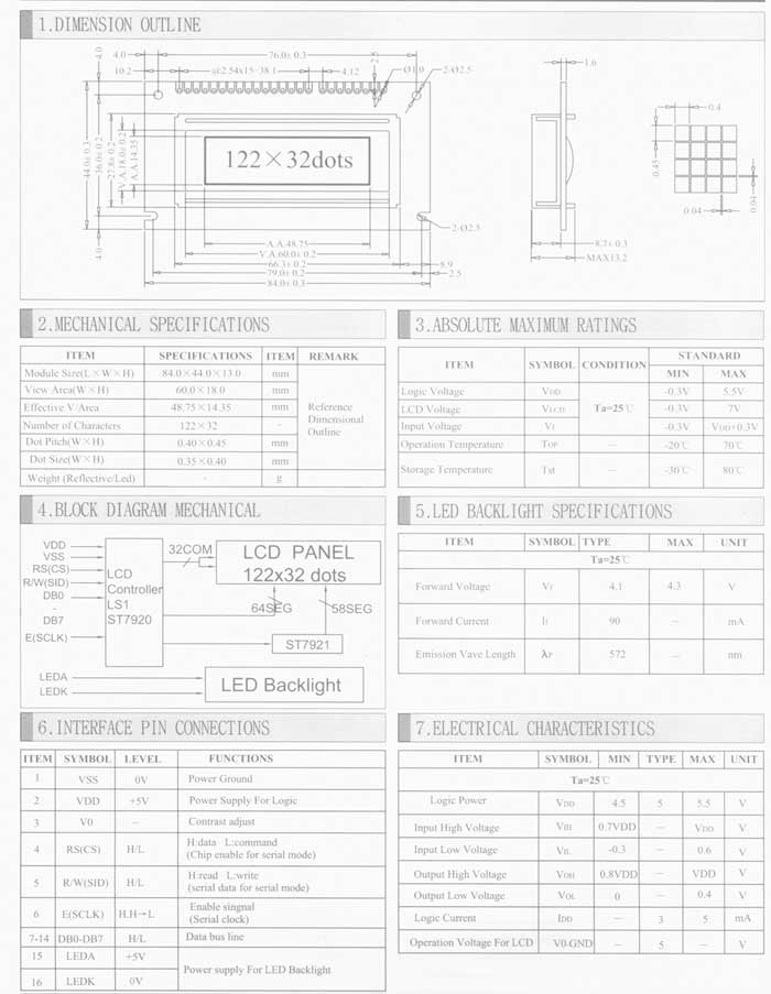 16K位半宽字型ROM(HCGROM),总共提供126个西文字型(16×8点阵)